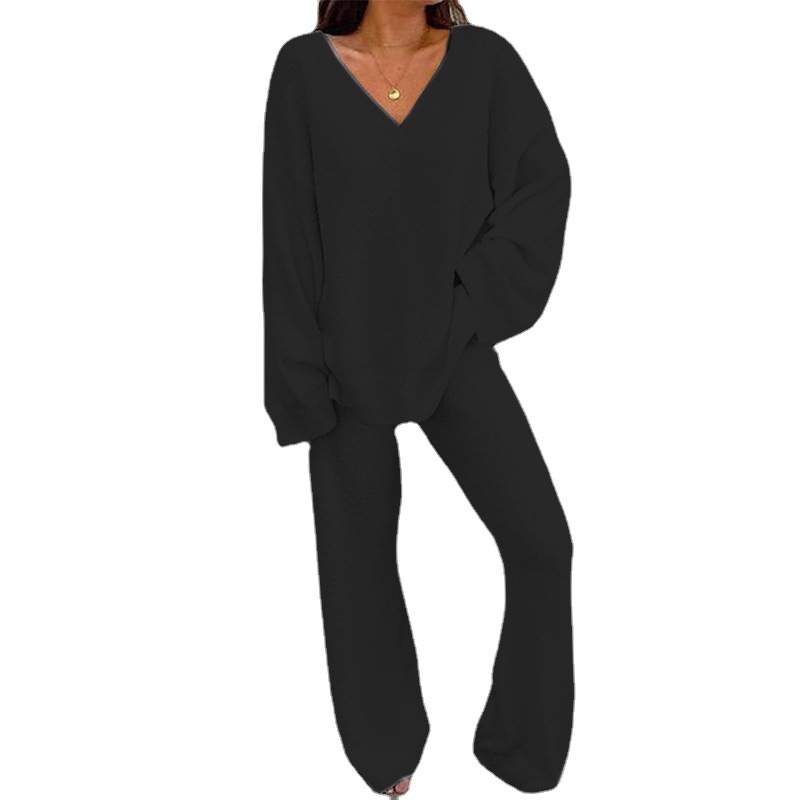 Ensemble 2 pièces femme cocooning chaud col V uni – Hiver 2022