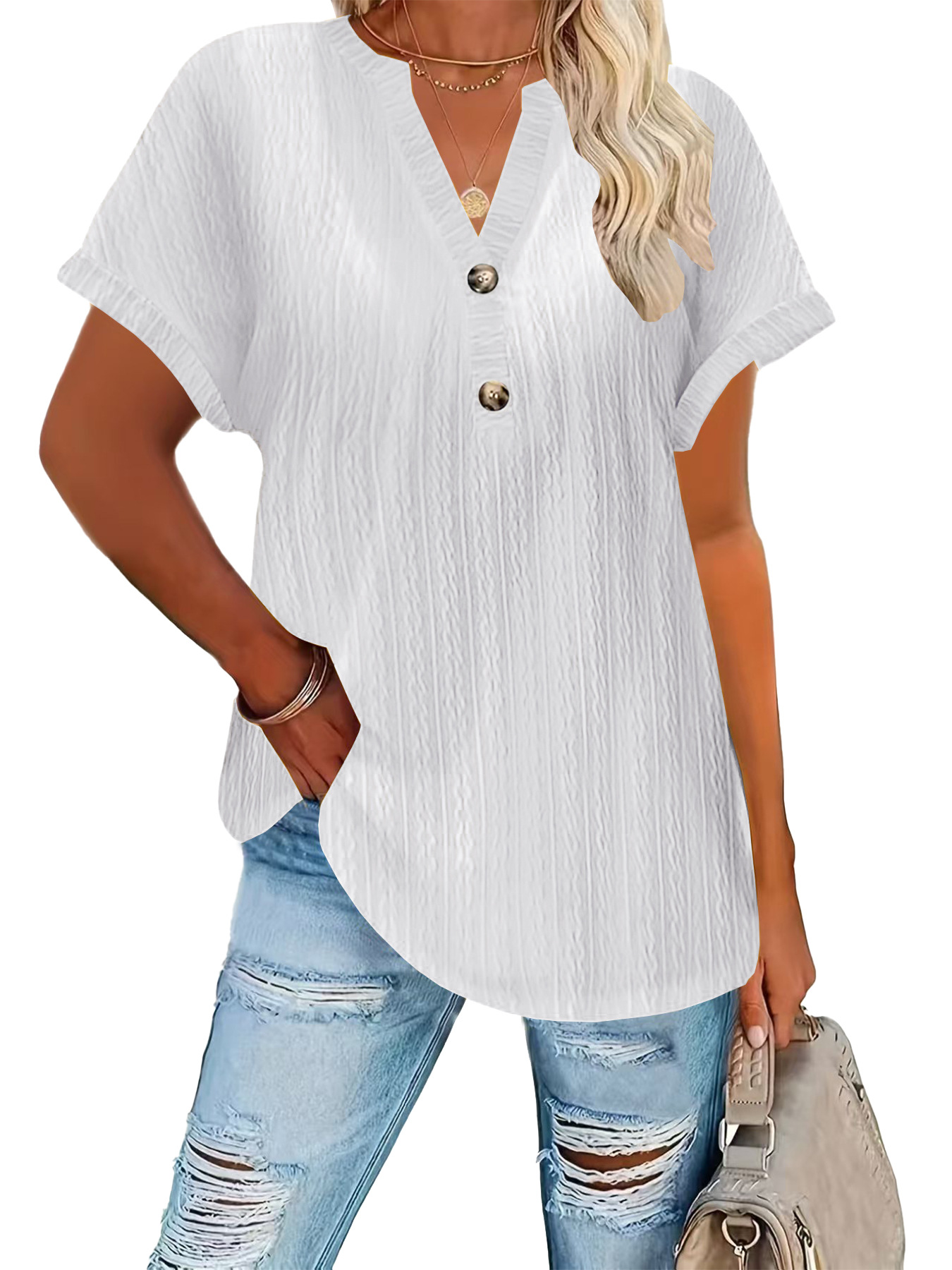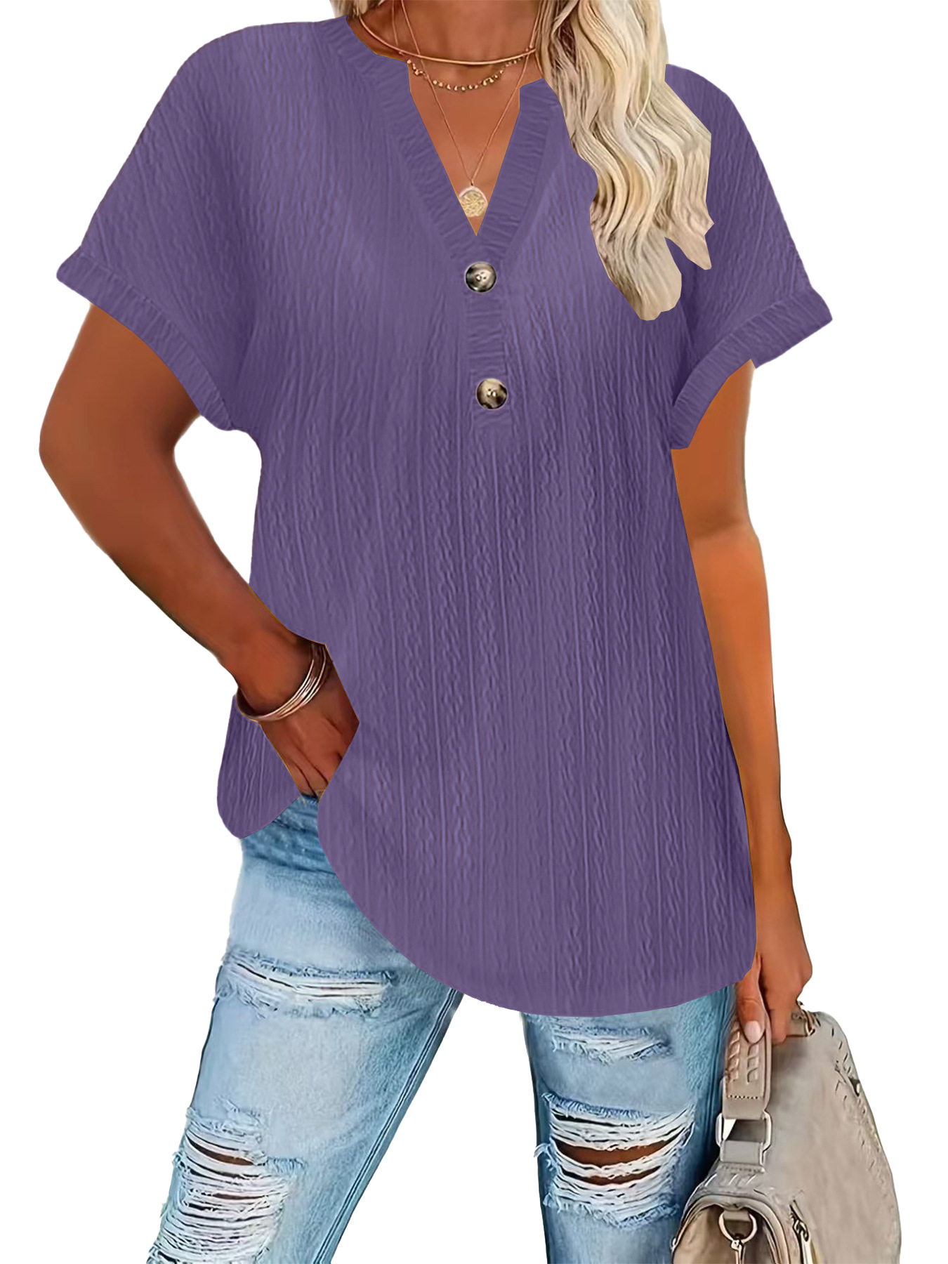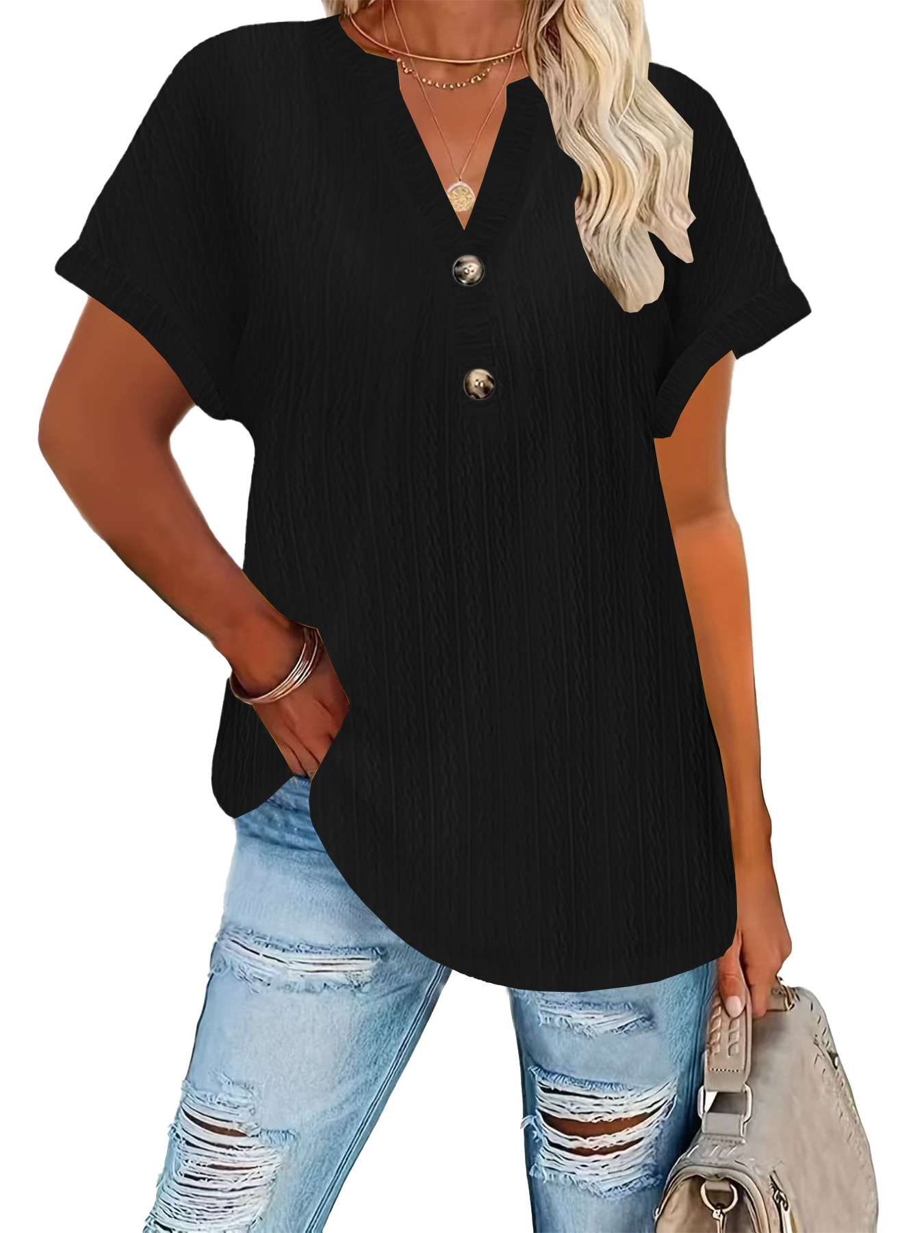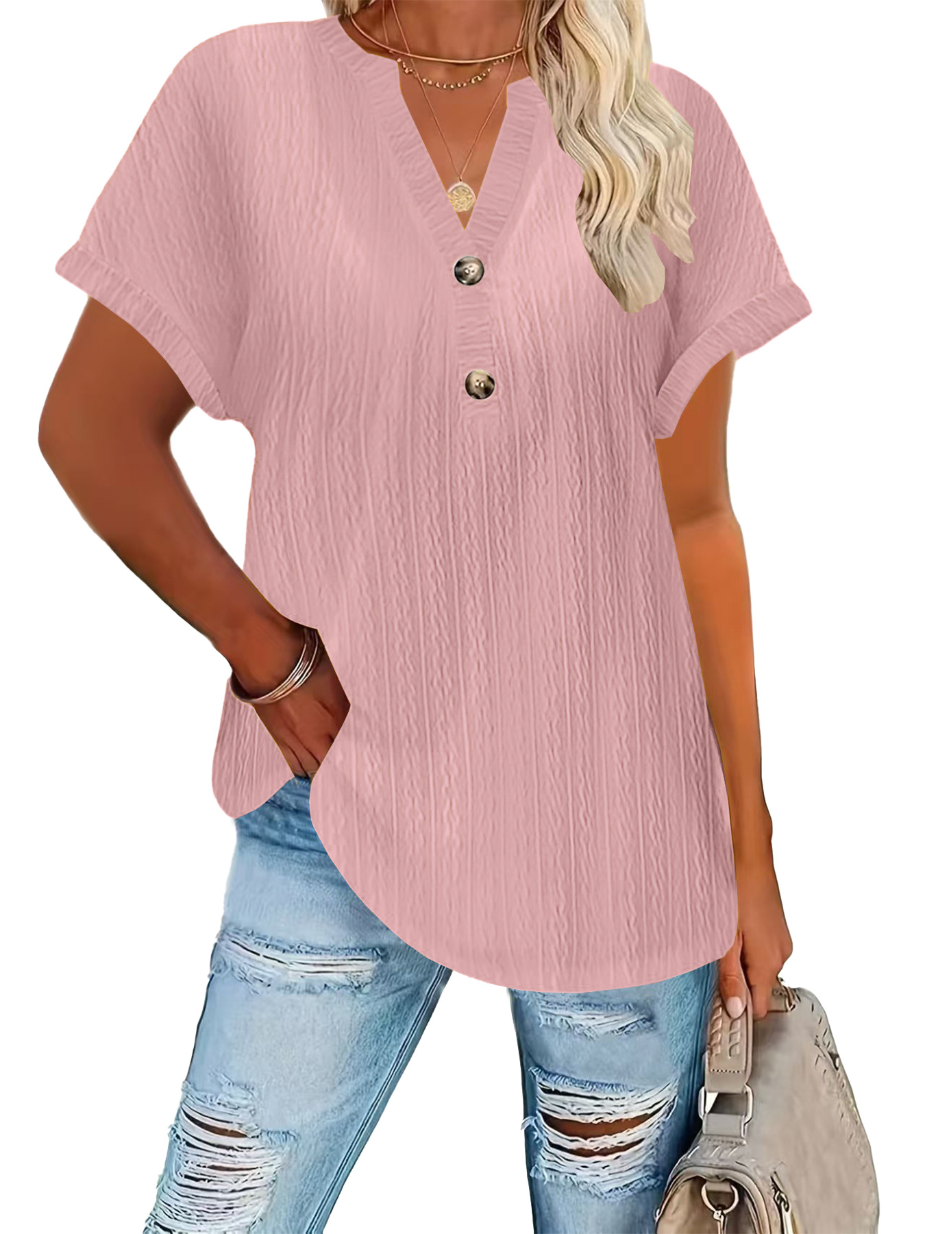 T-shirt femme col V boutons uni mode décontractée printemps-été 2026