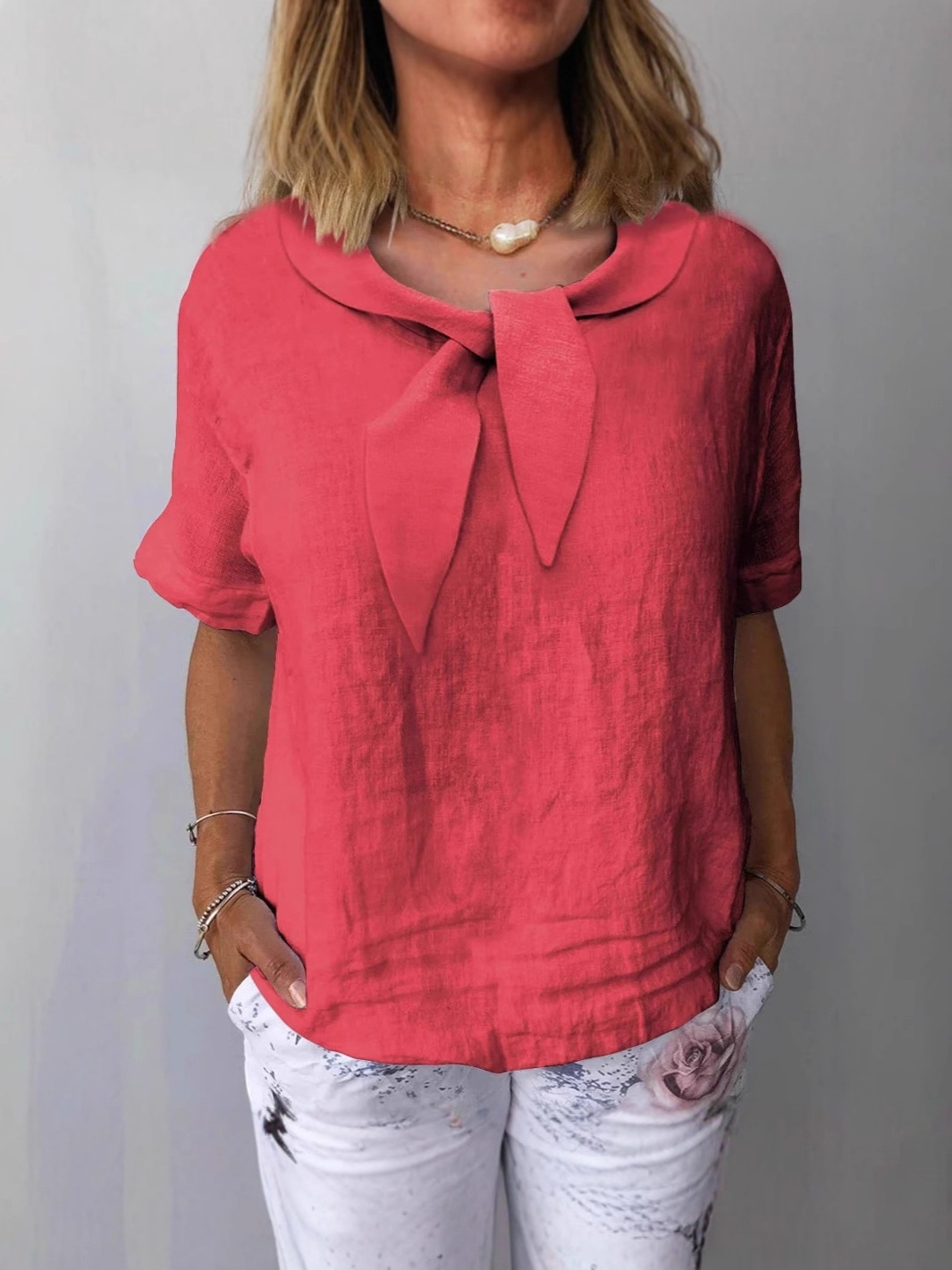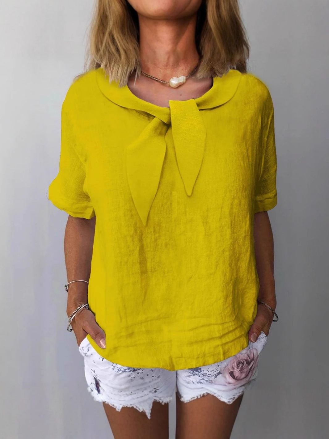 T-shirt femme coton lin manches courtes uni style décontracté été 2025