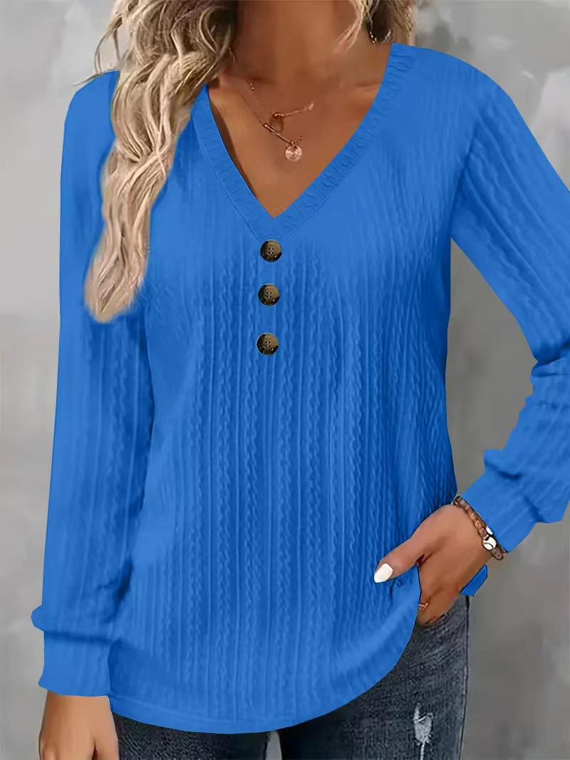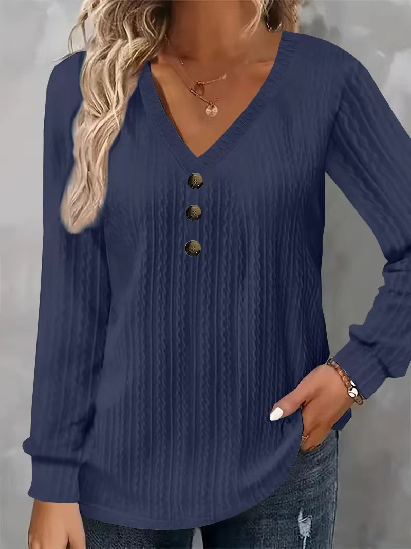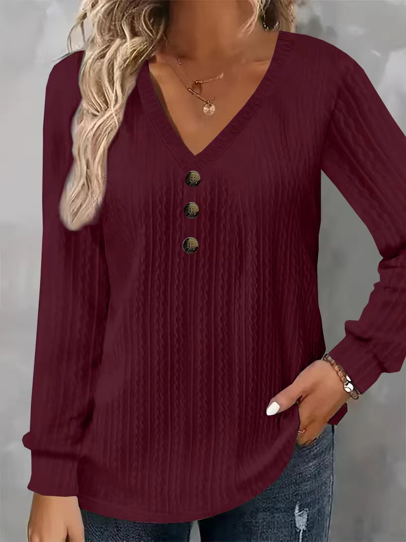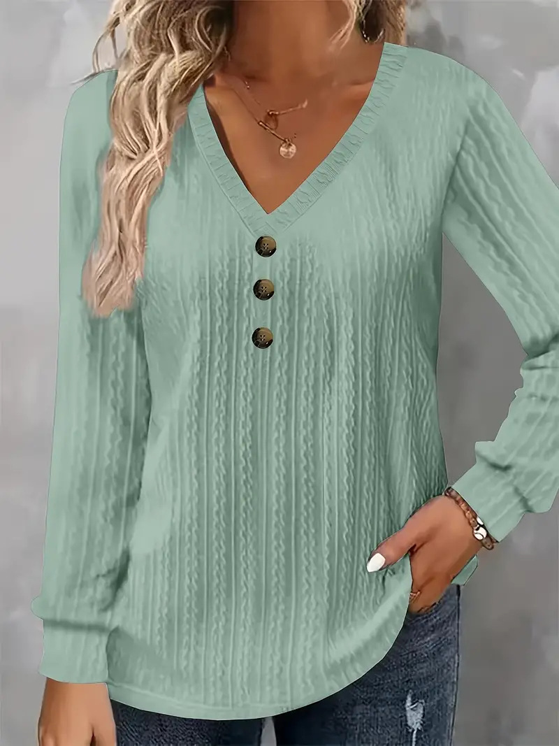 T-shirt femme grande taille manches longues col V boutons texture 2024