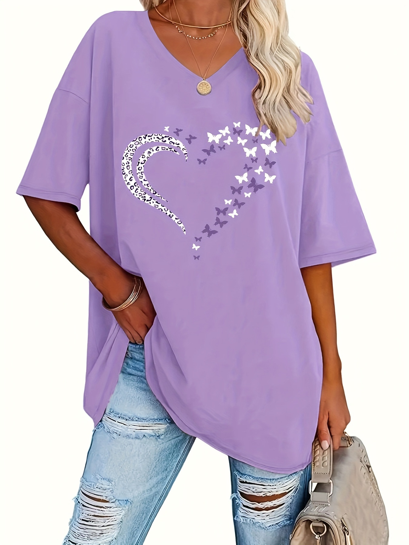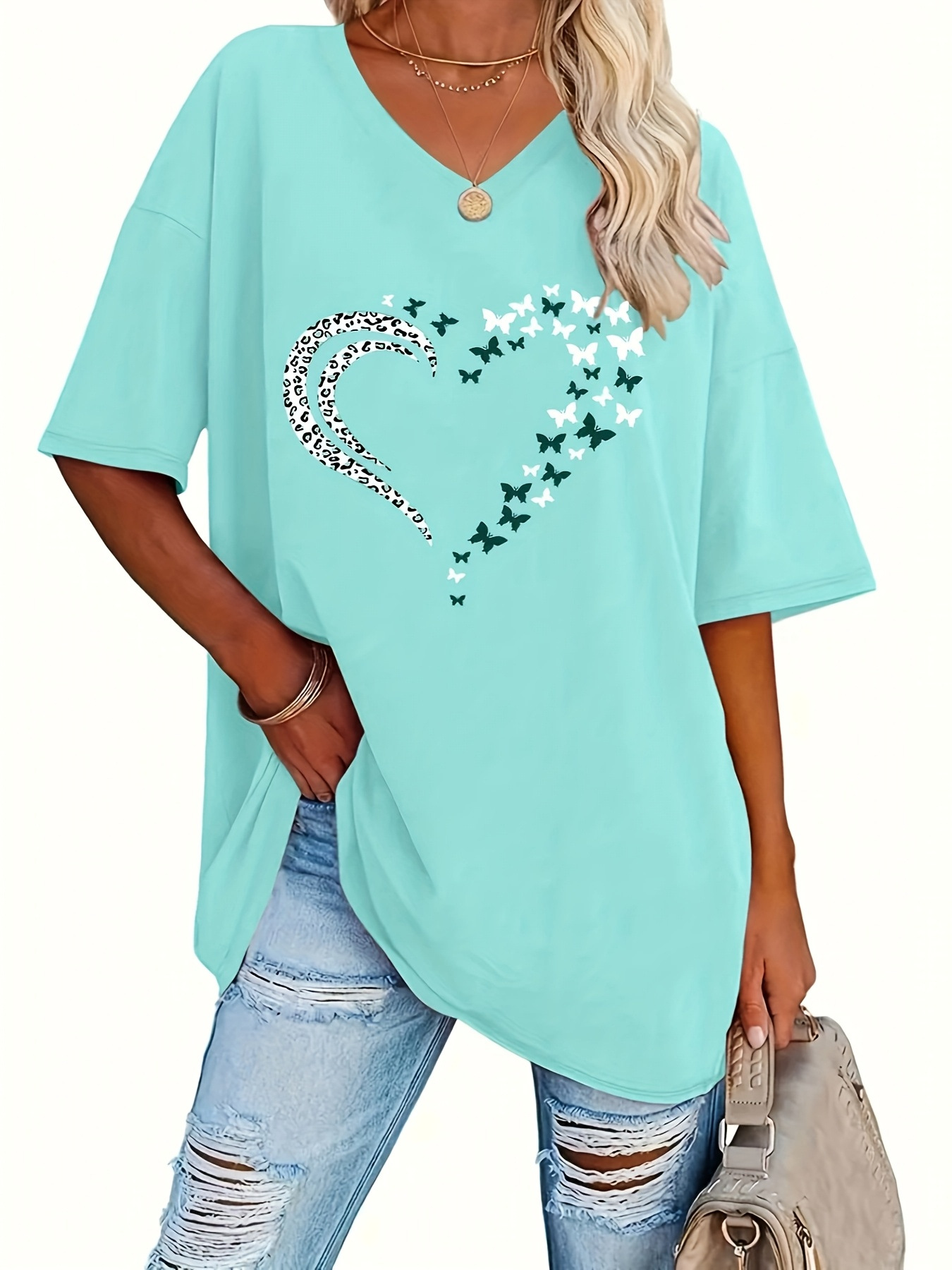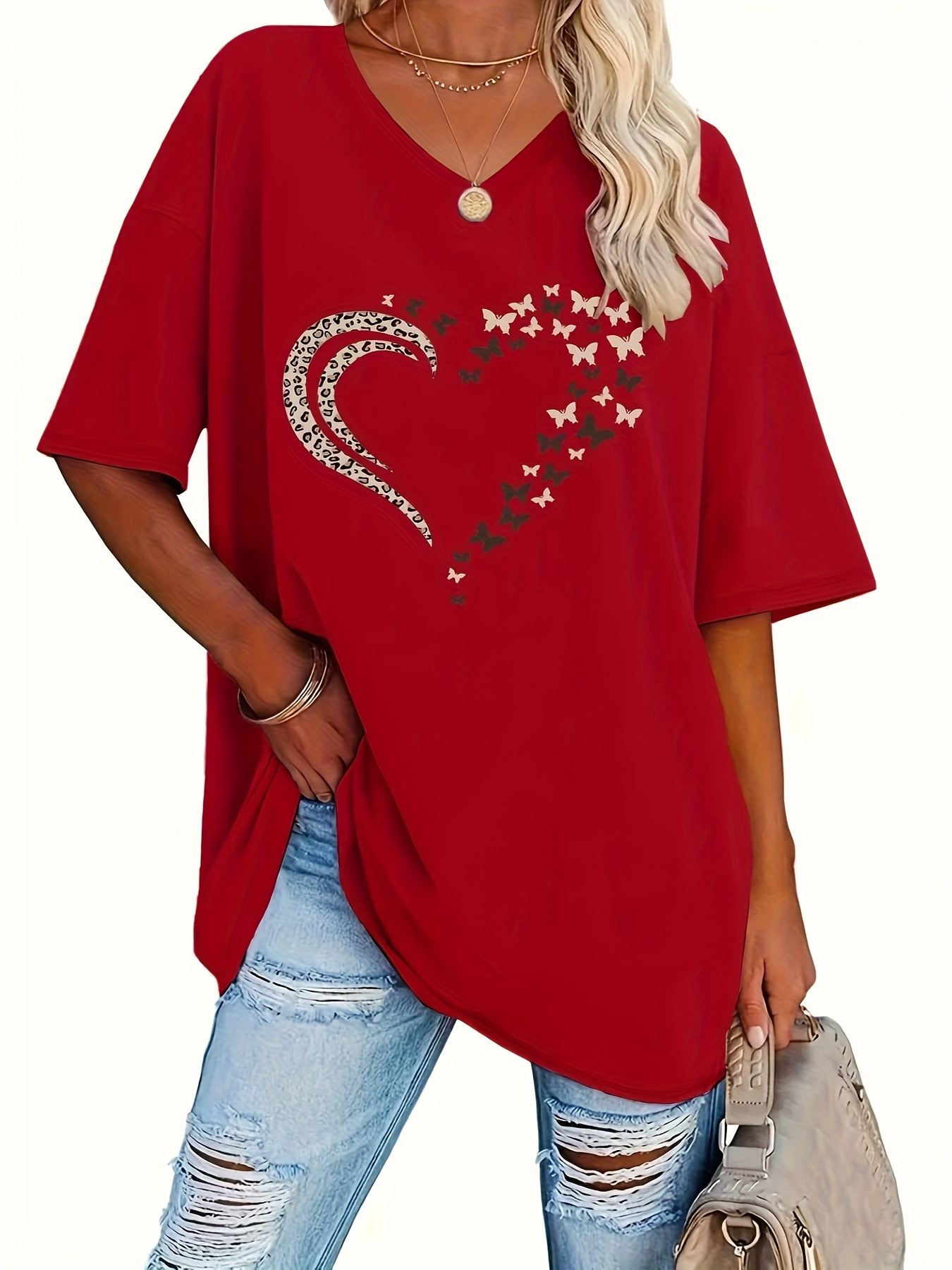 T-shirt femme manches courtes imprimé cœurs loose décontracté printemps 2026